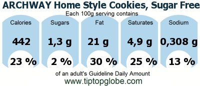 ARCHWAY Home Style Cookies, Sugar Free Oatmeal: Food, drinks and meals: GDA, caloric and nutritional values