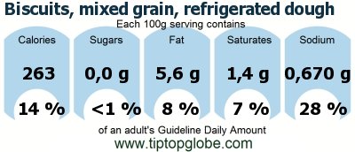 Biscuits, mixed grain, refrigerated dough: Food, drinks and meals: GDA, caloric and nutritional values