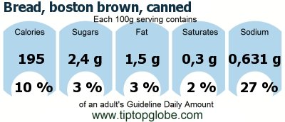 Bread, boston brown, canned: Food, drinks and meals: GDA, caloric and nutritional values