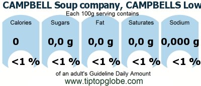 CAMPBELL Soup company, CAMPBELLS Low Sodium Soups, Cream of Mushroom Soup: Food, drinks and meals: GDA, caloric and nutritional values
