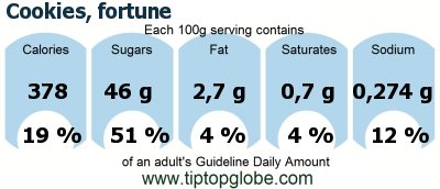 Cookies, fortune: Food, drinks and meals: GDA, caloric and nutritional values