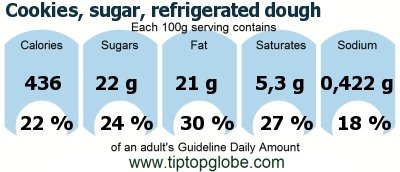 Cookies, sugar, refrigerated dough: Food, drinks and meals: GDA, caloric and nutritional values