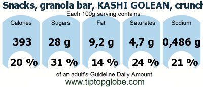 GDA, caloric and nutritional values: Snacks, granola bar, KASHI GOLEAN, crunchy, mixed flavors